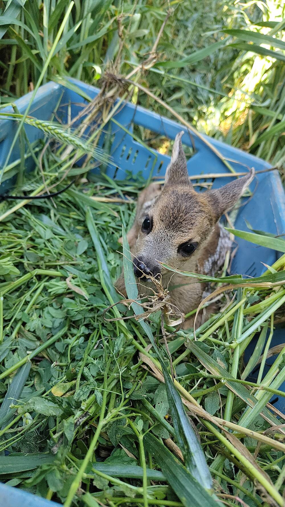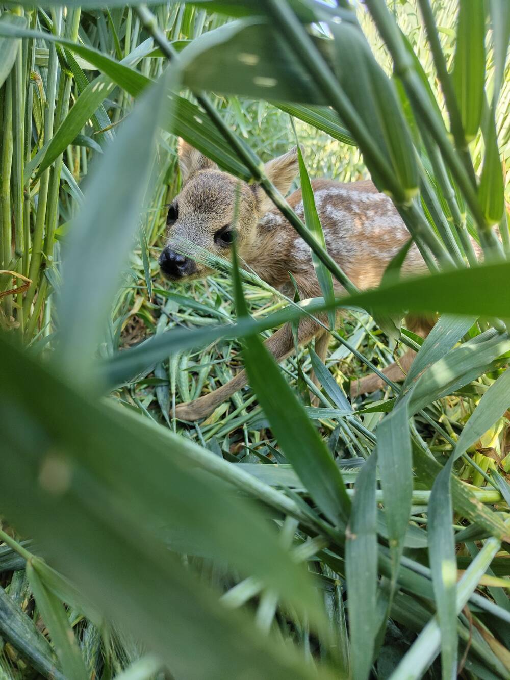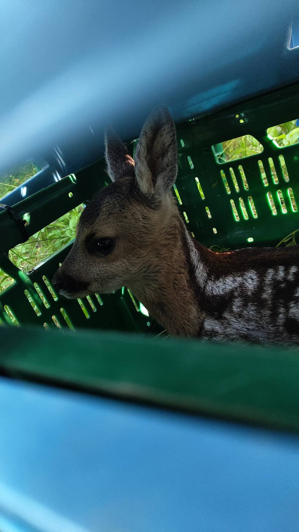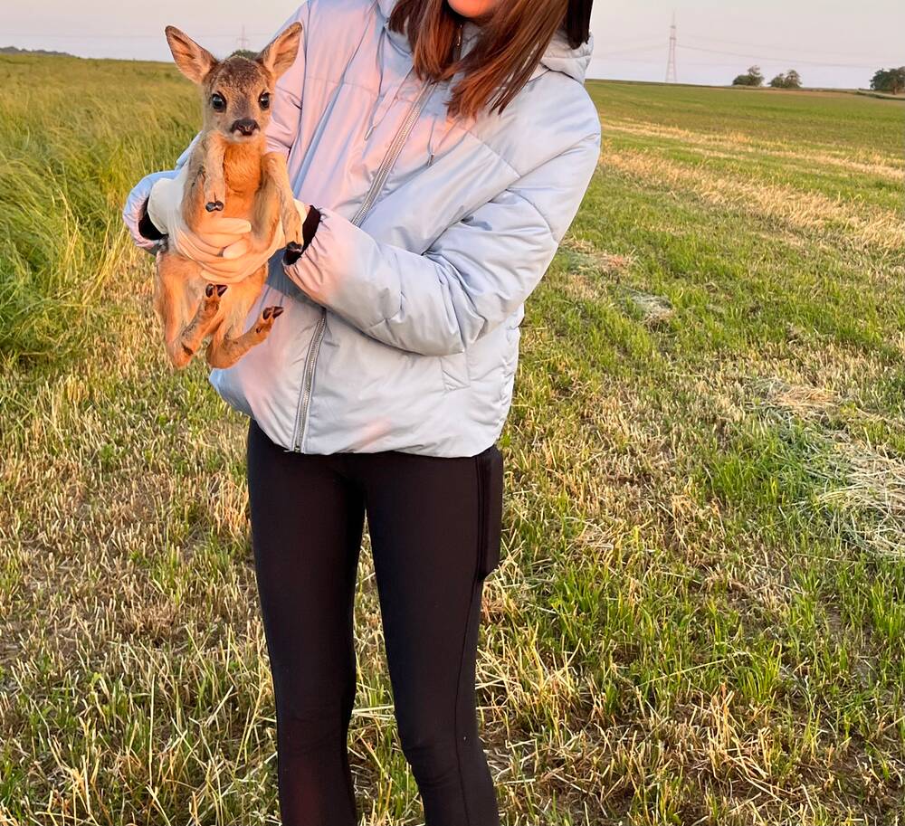 Mittlerweile konnte ich über 60 Kitze retten. Besonders in Erinnerung geblieben ist mir ein Moment, bei dem ich live die Geburt eines Kitzes miterlebt habe. Es lag noch ganz nass im Gras – wir konnten es rechtzeitig sichern und so sein Leben retten.