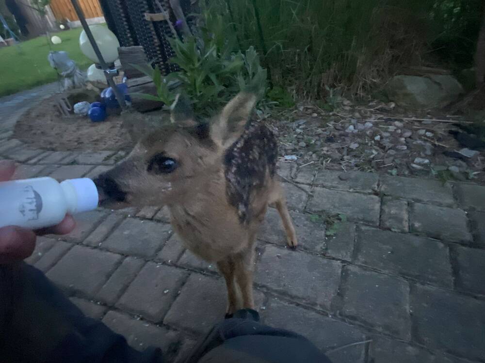 Das gerettete Rehkitz – inzwischen liebevoll Re(h)nate genannt – wird seither mit der Flasche aufgezogen. Es nimmt die Milch gut an, zeigt eine stabile Entwicklung und wirkt aufmerksam und lebhaft. Die Aufzucht eines Wildtieres ist jedoch nie unproblematisch: Sie verlangt viel Erfahrung, Geduld und eine kontinuierliche, fachgerechte Versorgung.