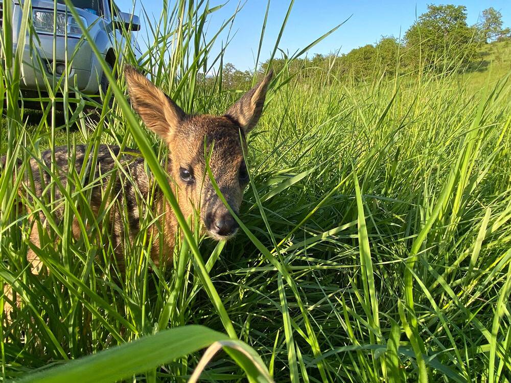 Ein zweites Junges, das sich noch im Mutterleib der Ricke befand, konnte leider nicht gerettet werden. Trotz umgehender Bergung kam jede Hilfe zu spät.
