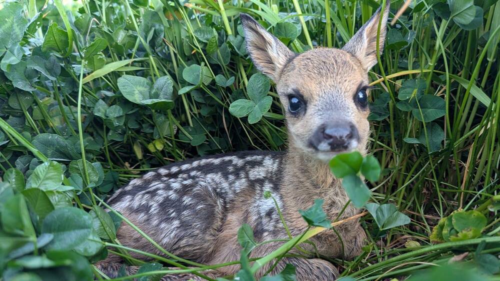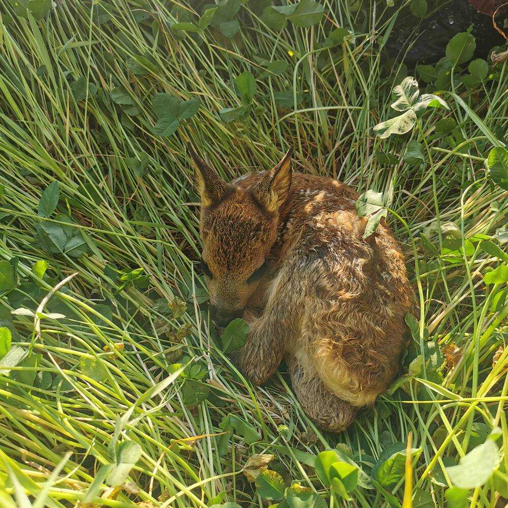 Als Landwirte und Jäger haben meine Frau und ich die doppelte Verantwortung zur Kitzrettung. Dies ist für uns die letzten Jahre zur Ehrensache geworden und seit Jahren ist die Drohne fester Bestandteil der Silagekette und fliegt alle Flächen vor dem Mähwerk ab. Letztes Jahr konnten wir so 67 Kitze retten. Dieses Jahr waren wir mit der ersten Mahd Witterungsbedingt früher. Die meisten Kitze waren wohl noch nicht gesetzt, trotzdem konnten wir 5 ganz frische Kitze retten. Diese werden berührungsfrei am Feldrand gesichert und direkt nach der Mahd wieder frei gelassen.