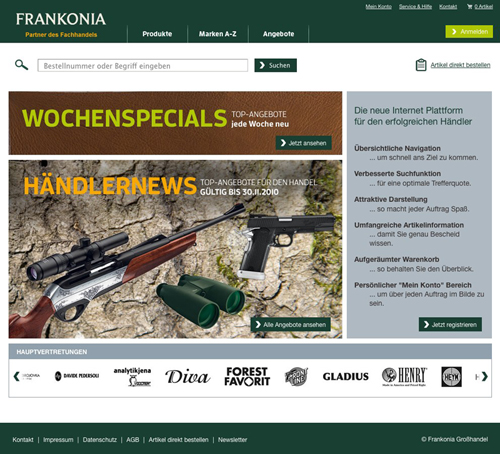 Neues Frankonia Portal "b2b" für den Waffenfachhandel